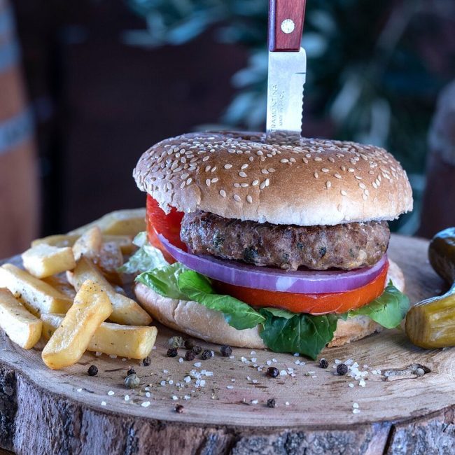 Με πατάτες τηγανιτές και ψητά λαχανικά